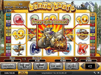 The Bonus Bears slot machine is dedicated to animals. This development from Playtech invites you to help the hapless bear in the extraction of honey. As a reward, you will get the winnings of up to 5,000 for a spin and profitable bonus features. There is a scatter and a wild symbol.